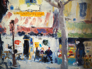 塔のあるカフェ パリ(3号油絵/036/1985年)